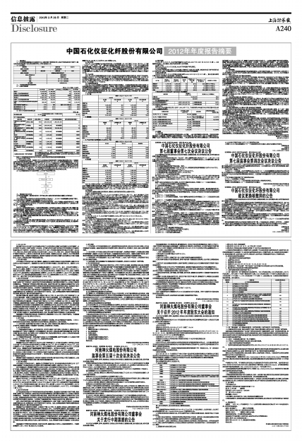 中国石化仪征化纤股份有限公司2012年年度报告摘要