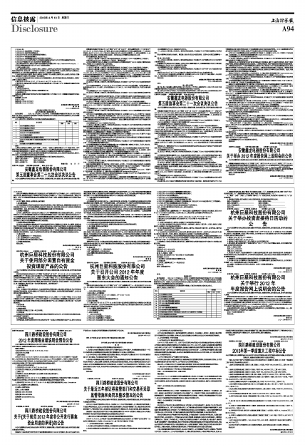 杭州巨星科技股份有限公司(以下简称“公司”)《2012年年度报告》全文及其摘要已经公司第二届董事会第二十一次会议审议通过,详见同日披露于巨潮资讯网(www.cninfo.com.cn)的《2012年年度报告》全文及其摘要。 根据《深圳证券交易所中小企业板块上市公司特别规定》和《深圳证券交易所中小企业板上市公司规范运作指引》的规定,公司将于2013年4月16日下午15:00-17:00在深圳证券信息有限公司提供的网上平台举行2012年年度报告网上说明会。本次说明会将采用网络远程方式举行,投资者可登陆投资者互动平台:http:// irm.p5w.net参与本次说明会。