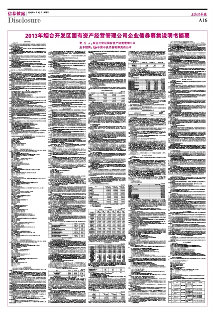 2013年烟台开发区国有资产经营管理公司企业债券募集说明书摘要