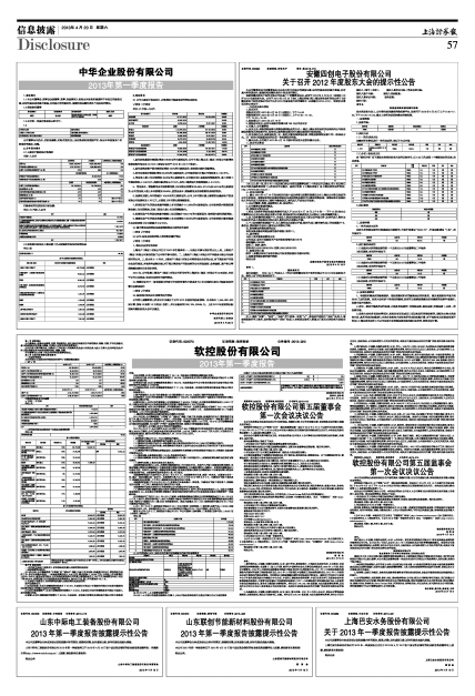 山东中际电工装备股份有限公司2013年第一季度报告已于2013年4月19日在中国证监会指定的创业板信息披露网站:巨潮资讯网(http://www.cninfo.com.cn) 上披露,请投资者注意查阅!
