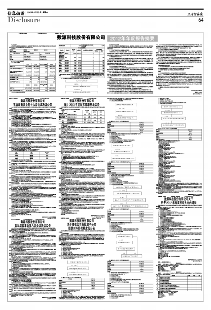 一.审议通过《数源科技2012年年度报告及摘要》。