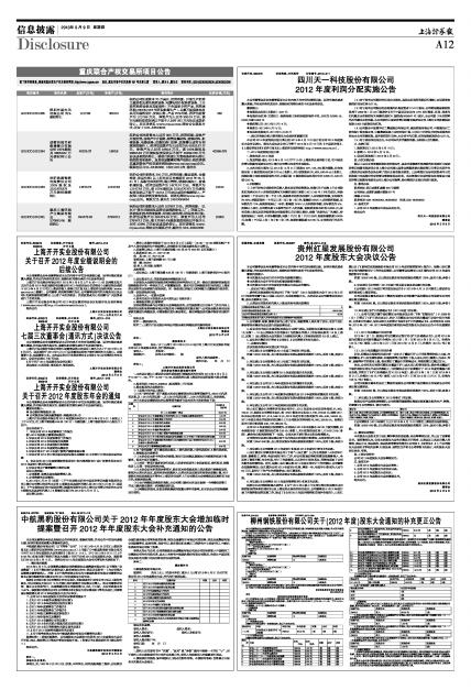 上海开开实业股份有限公司2012年度股东年会定于2013年6月 5日(星期三)上午9时正,在上海市海防路429弄100号1号楼四楼(上海市旅游培训中心报告厅)召开。