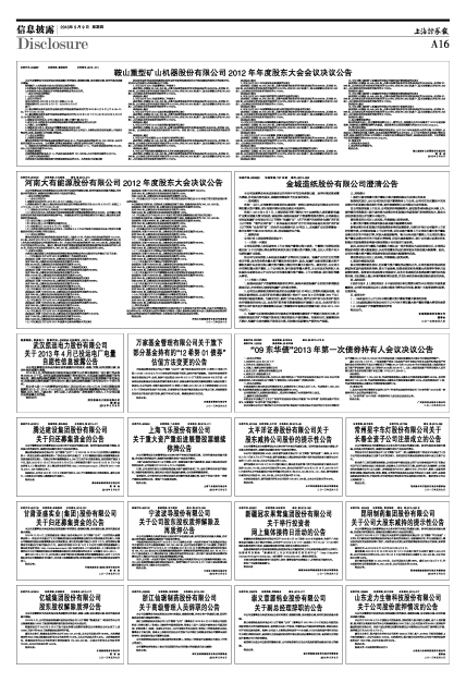 河南大有能源股份有限公司2012年度股东大会决议公告