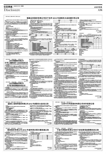 福建众和股份有限公司关于召开2012年度股东大会的提示性公告