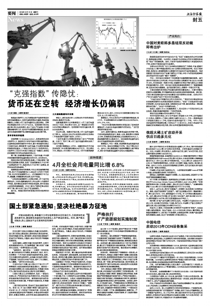 被英国《经济学人》认为更能反映中国经济真实状况的克强指数显示,当前中国经济增长仍偏弱,构成克强指数的三大指标:4月工业用电量环比出现负增长,尽管同比增速较3月份上升4.4个百分点,但若按照日均用电量计算,同比也是负增长,显示工业生产仍疲弱;中长期贷款余额有所上升,但对公中长期贷款持续低迷,显示企业对未来盈利预期不佳;铁路货运量也出现大幅下滑。