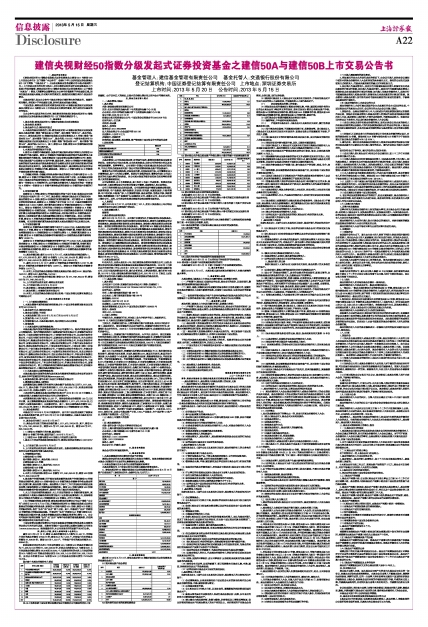 建信央视财经50指数分级发起式证券投资基金之建信50A与建信50B上市交易公告书