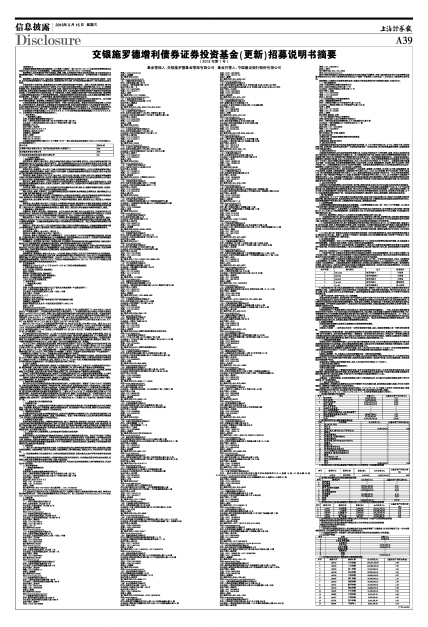 交银施罗德增利债券证券投资基金(更新)招募说明书摘要