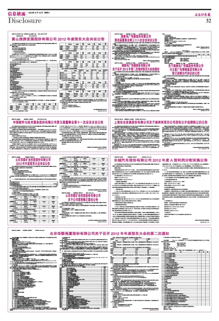 黄山旅游发展股份有限公司2012年度股东大会决议公告