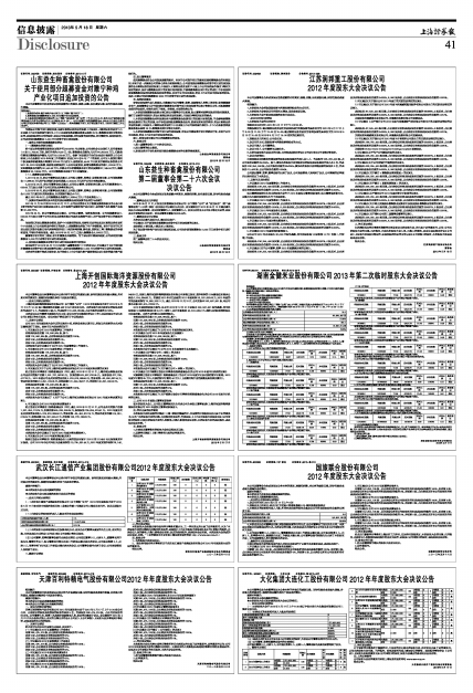 武汉长江通信产业集团股份有限公司2012年度股东大会决议公告