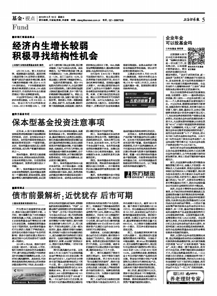 从最新公布的4月份CPI和PPI数据来看,经济内生增长动力较弱,同时受食品和劳动力成本影响,CPI有一定的上行压力,未来企业盈利整体一般,股票投资仍需寻找结构性机会。