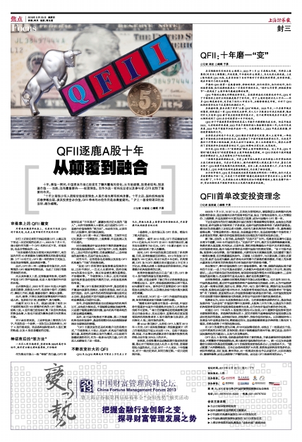“十年之前很少有人贯彻价值投资理念,A股市场也鲜有机构身影。十年之后,国内机构如雨后春笋般出现,谈及投资言必价值,QFII带来的示范作用是毋庸置疑的。”沪上一基金经理回忆起当初,颇为感慨。