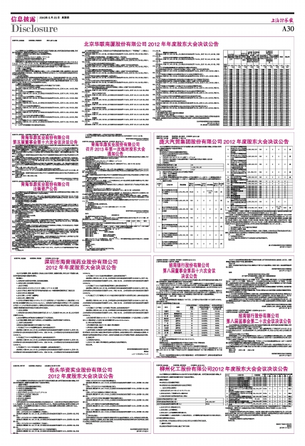 北京华联商厦股份有限公司2012年年度股东大会决议公告