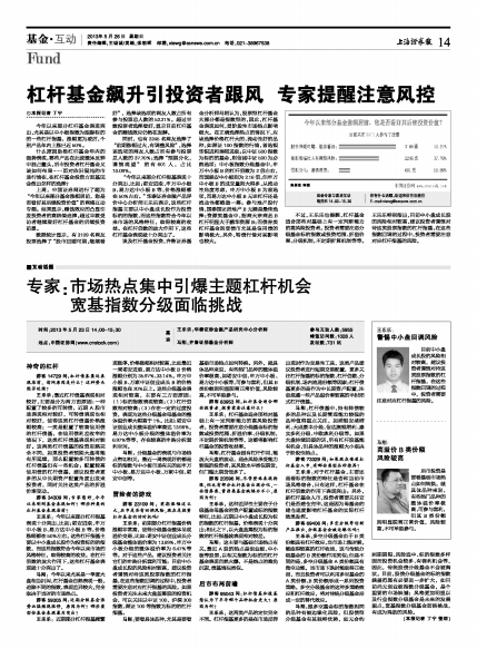马刚:杠杆基金因有杠杆作用,能放大大盘的波动,适合风险承受能力较强的投资者,其风险水平类似期货,但门槛比期货低多了。