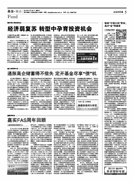 经过几十年的高速增长后,我国经济从2011年开始逐季回落,并在2012年底企稳。GDP增速2012年4季度为7.9%,2013年1季度为7.7%,目前基本上处于一个底部震荡的弱复苏状态。从相关数据看,4月工业增速有所反弹,但幅度有限;5月份汇丰PMI由上月50.4降至本月49.6,其中产出指数由51.1%下降至51%,新订单指数由51.2%下降至49.5%,产成品库存指数由52.2%下降至51.6%,整体经济呈现新增需求收缩,生产微弱扩张,库存持续增加的态势。但考虑到目前投资、消费、出口依然稳定,在低通胀背景下货币政策偏松持续,我们预计经济仍将平稳增长,弱复苏趋势延续,但回升力度有所减弱。