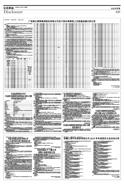 安徽江淮汽车股份有限公司2012年年度股东大会决议公告