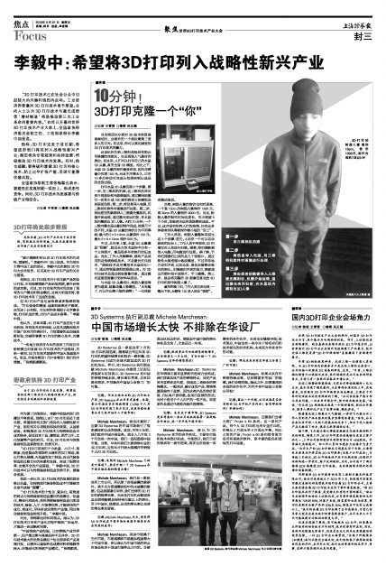 3D Systerms执行副总裁Michele Marchesan: 中国市场增长太快 不排除在华设厂