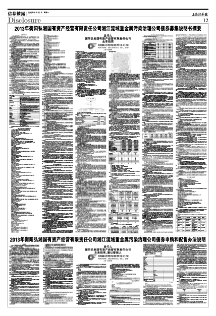募集说明书摘要:指发行人根据有关法律、法规为发行本期债券而制作的《2013年衡阳弘湘国有资产经营有限责任公司湘江流域重金属污染治理公司债券募集说明书摘要》。