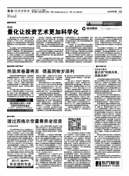 最近在农业银行发行的东方利群混合型基金,是市场上少有的混合型发起式基金产品,出于对公司本身权益类投资能力的自信,基金设置了0-95%的权益类资产投资比例,在动荡的市场环境中,通过充分发挥基金管理人的投资、研究、决策能力,灵活配置基金资产,在追求绝对收益的基础上,努力为投资者带来最为丰厚的投资回报。在具体操作中,基金将采取稳健的建仓策略,通过“安全垫”的累积,结合自身对于权益类资产投资的把握,主动地寻找市场时机,积极地为投资者带来长期稳定的收益回报。