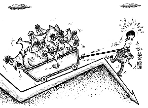 尽管公募基金业中,基金经理一拖多早已是见怪不怪的现象,但近日爆出的某基金公司旗下两位基金经理“一拖七”、“一拖八”的负重奇观,却仍是业内非常少见的。这不能不使投资者对其管理的基金充满了担忧。有投资者直言该基金业绩招牌都快砸碎了。漫画 刘道伟