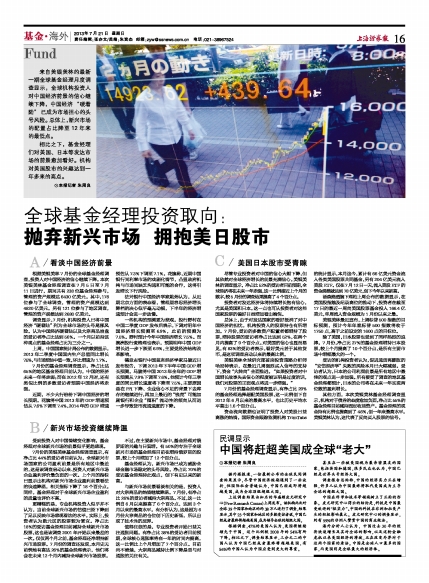 相比之下,基金经理们对美国、日本等发达市场的前景愈加看好。机构对美国股市的兴趣达到一年多来的高点。