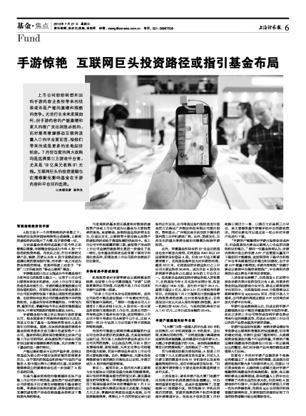 事实上,截至目前,A股尚有六家互联网与文化板块公司因涉及重大收购而继续停牌。其中包括华商基金重仓的华谊兄弟、嘉实基金重仓的华策影视、华商基金重仓的朗玛信息,而工银瑞信基金所持有的掌趣科技7月3日公告收购动网先锋获证监会正式批复,但短短几日之后,掌趣科技再度启动重大收购,公司股票继续停牌。停牌近2个月的华谊兄弟日前发布公告证实,公司将通过发行股份及支付现金的方式购买广州银汉科技有限公司部分股权。资料显示,广州银汉是目前仅次于腾讯的国内第二大手机游戏厂商。此外,美盛文化、天舟文化的重大停牌也被坊间猜测为收购手游标的。