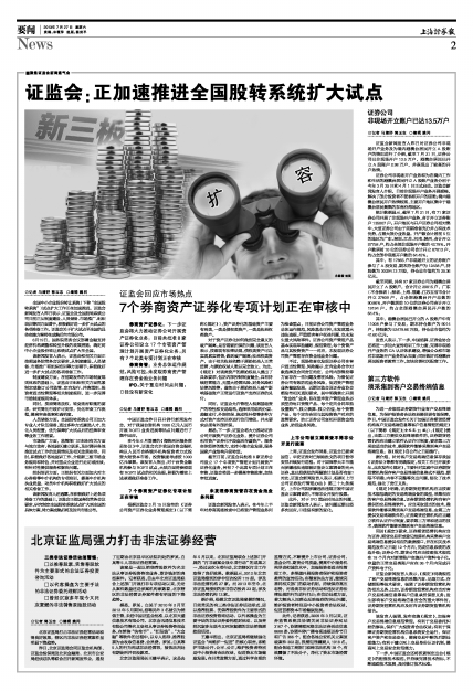 截至目前,证监会共批准8家证券公司设立17个专项资产管理计划开展资产证券化业务,另有7个此类专项计划正在审核,证监会将进一步提高审核效率,加快审批进度。