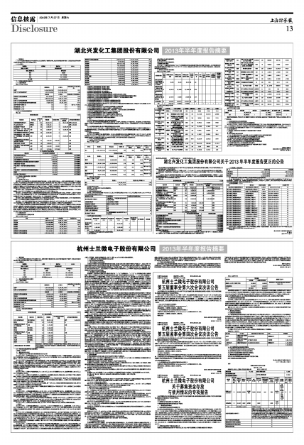 证券代码:600460 股票简称:士兰微 编号:临2013-035