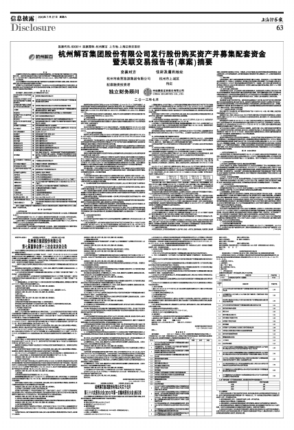 杭州解百集团股份有限公司发行股份购买资产并募集配套资金