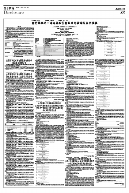 合肥荣事达三洋电器股份有限公司收购报告书摘要