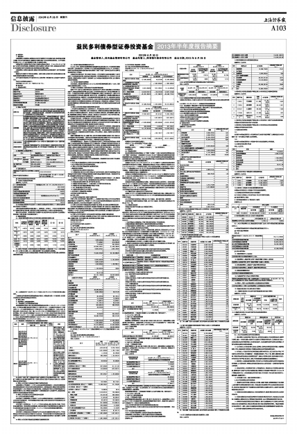 基金管理人:益民基金管理有限公司 基金托管人:招商银行股份有限公司 送出日期:2013年8月28日