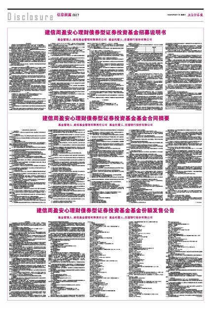 建信周盈安心理财债券型证券投资基金基金份额发售公告