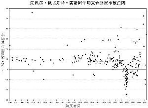 上个月我们介绍了战后及当代艺术的代表人物安迪·沃霍尔的作品回报情况,作为比较,我们将介绍一位印象派的代表人物皮埃尔·奥古斯特·雷诺阿。雷诺阿重复拍卖作品的平均年均复合回报率为7.57%,远低于沃霍尔的19.51%。从额外回报的角度来看,沃霍尔的11.85%比较令人满意,而雷诺阿则为负值。但雷诺阿作品回报率的波动较小,标准方差为9.91%,略小于沃霍尔的13.28%。从上图我们可以看到,1985年前购买雷诺阿的作品,基本都取得了正的回报,而在1990年左右购买作品的回报就难以令人满意。