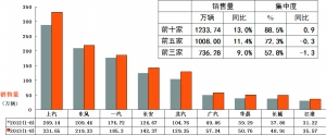 随着商用车、乘用车市场的变化,强势汽车集团业绩也随之变化,今年以来业绩保持增长,但部分指标增长幅度下降。今年1月至8月,汽车销量排名前十位的企业集团销量合计为1233.74万辆,比上年同期增长13%;高于全行业增速1.2个百分点。占汽车销售总量的88.5%,比上年同期提高0.9个百分点。