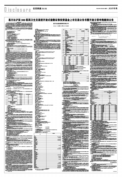 易方达沪深300医药卫生交易型开放式指数证券投资基金(以下简称“本基金”)上市交易公告书依据《中华人民共和国证券投资基金法》(以下简称“《基金法》”)、《证券投资基金信息披露内容与格式准则第1号〈上市交易公告书的内容与格式〉》和《上海证券交易所证券投资基金上市规则》的规定编制,易方达基金管理有限公司(以下简称“基金管理人”)的董事会及董事保证本报告所载资料不存在虚假记载、误导性陈述或者重大遗漏,并对其内容的真实性、准确性和完整性承担个别及连带责任。本基金托管人中国建设银行股份有限公司保证本报告书中基金财务会计资料等内容的真实性、准确性和完整性,承诺其中不存在虚假记载、误导性陈述或者重大遗漏。