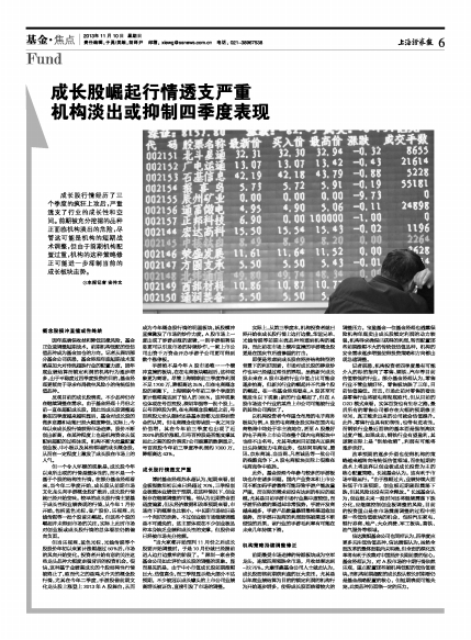 “当大家都开始预判11月份之后成长股要开始调整时,于是10月份就已经提前进入边打边撤单的阶段了。”深圳一家合资基金公司如此评价成长股的调整的现象。显而易见的是,由于中小市值成长股前期涨幅巨大、估值高企,而三季报显示绝大部分不达预期,不少被冠以成长噱头的上市公司业绩高增长被证伪,直接引发了市场的调整。
