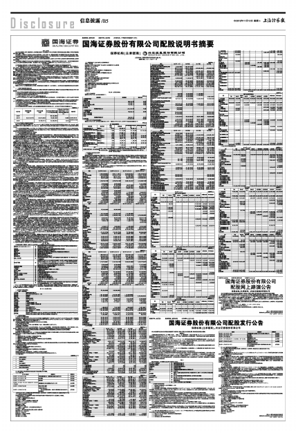 经中国证券监督管理委员会证监许可[2013]1284号文核准,国海证券股份有限公司(以下简称“国海证券”、“发行人”)向截至2013年11月15日(T日)下午深交所收市后,在中国证券登记结算有限责任公司深圳分公司登记在册的国海证券全体股东,按每10股配售3股的比例配售人民币普通股(A股)。《配股说明书摘要》和《配股发行公告》已于2013年11月12日(T-3日)刊登在《中国证券报》、《证券时报》、《上海证券报》和《证券日报》上,本次发行《配股说明书》全文及相关资料可在巨潮资讯网站(http://www.cninfo.com.cn)查询。