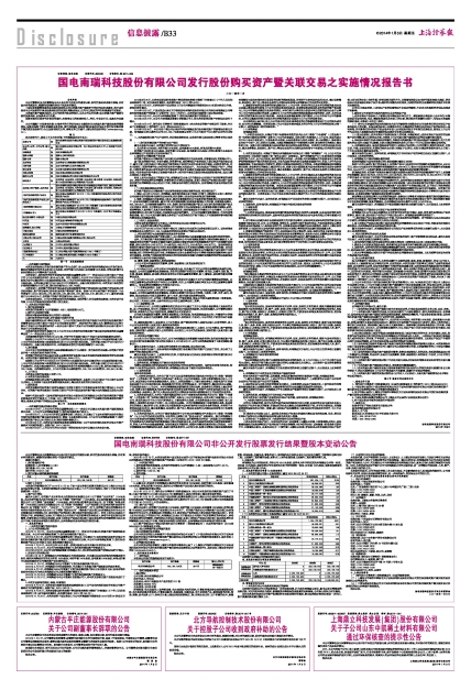 国电南瑞科技股份有限公司非公开发行股票发行结果暨股本变动公告