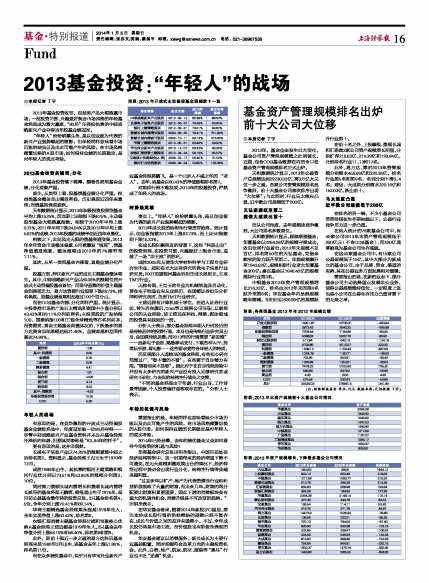 2013年基金投资收官,权益类产品大幅跑赢市场。一批投资习惯、兴趣爱好契合市场风格的年轻基金经理成为最大赢家,“80后”任泽松执掌的中邮战略新兴产业夺得当年股基业绩冠军。