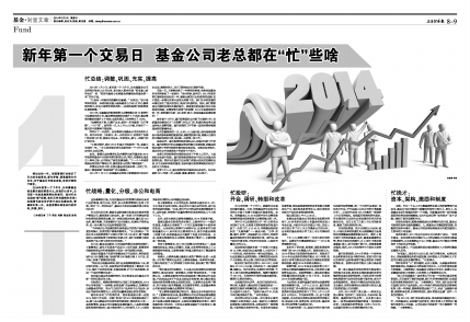 2014年的第一个工作日,公私募基金老总最先做的事是什么;在他们心目中,公司新一年的发展路径如何展开;面对行业出现的“新”局势,他们又有何期待和担忧?本期周刊走访京沪深三地公私募机构,管窥新年第一天,这些资管机构老总们的所思、所想、所行。