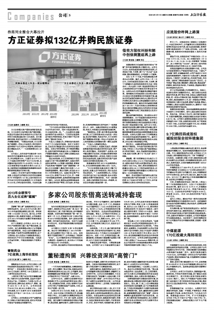 公告显示,本次交易中民族证券100%股权的作价暨最终交易价格为132.02亿元,评估增值率93%。以截至2013年8月31日民族证券的净资产68.37亿元计算,本次整体估值对应的PB水平约为1.93倍。方正证券新增发行股票的价格为6.09元/股,而新增发行股票数额将根据最终交易价格和新增股票发行价格计算。