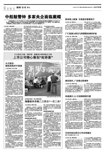 公司初步预测,化肥分公司关停搬迁后,预计2014年将比2013年减少尿素产量37万吨,减少销售收入约6.1亿元。2013年前三季度,上市公司营业收入48.8亿元,实现净利润8.29亿元。