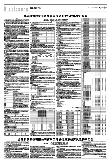 6、提请投资者关注本次发行价格与网下投资者报价之间的差异。发行人及主承销商在同日刊登的《金轮科创股份有限公司首次公开发行股票发行公告》中披露了每位网下投资者的详细报价情况等。以上数据仅用于如实反映网下投资者的报价情况,不构成对发行人的投资建议,提请投资者注意。