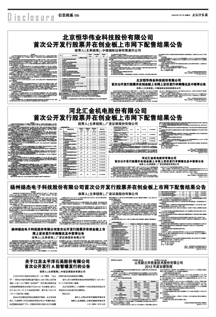 扬州扬杰电子科技股份有限公司首次公开发行股票并在创业板上市网下配售结果公告