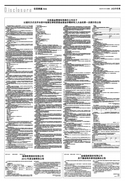 以通讯方式召开长信中短债证券投资基金基金份额持有人大会的第一次提示性公告