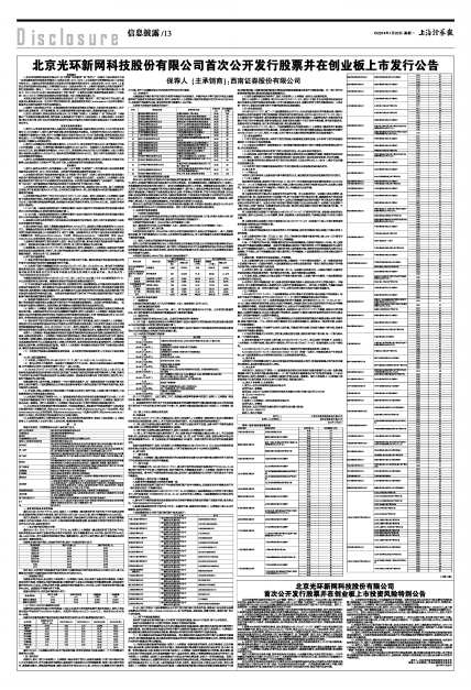 北京光环新网科技股份有限公司首次公开发行股票并在创业板上市发行公告