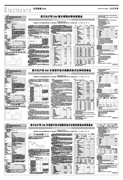 3.根据《易方达沪深300 量化增强证券投资基金基金合同》,业绩比较基准自2013年6月7日起,由“沪深300指数收益率×80%+活期存款利率(税后)×20%”变更为“沪深300指数收益率×95%+活期存款利率(税后)×5%”;基金业绩比较基准收益率在变更前后期间分别根据相应的指标计算。