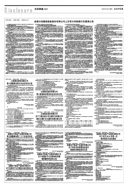 成都天保重型装备股份有限公司上市首日风险提示及澄清公告