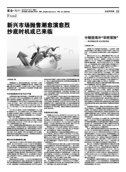 莫比尔斯最新的观点与创造金砖四国概念的奥尼尔(JimO’Neill)不谋而合。奥尼尔近日曾表示,此轮大跌是一个买入良机。这位前高盛资产管理公司(GoldmanSachsAssetManagement)董事长、2001年创造了“金砖四国”一词的投资界大佬表示:“新兴市场有些地方会有些问题,但所谓的新兴市场危机真的很荒唐。我们可能更加接近一个好机会,可以买入一些东西,而不是加入这场恐慌之中。”