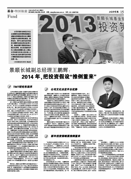 景顺长城副总经理王鹏辉:2014年,把投资假设“推倒重来”