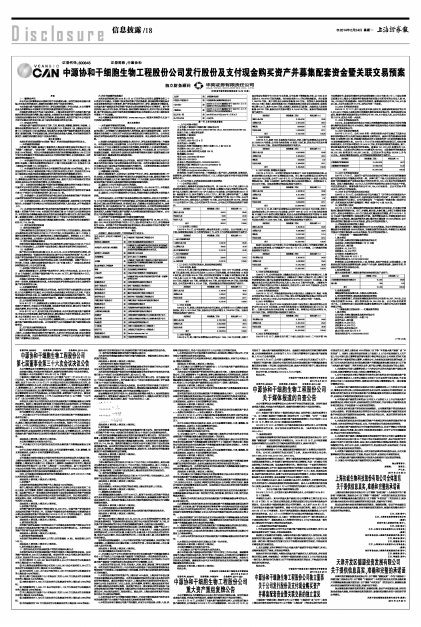 公司根据《上市公司重大资产重组管理办法》的相关要求,就公司本次发行股份及支付现金购买资产并募集配套资金事项制作了《中源协和干细胞生物工程股份公司发行股份及支付现金购买资产并募集配套资金暨关联交易预案》。内容详见上海证券交易所网站(www.sse.com.cn)。